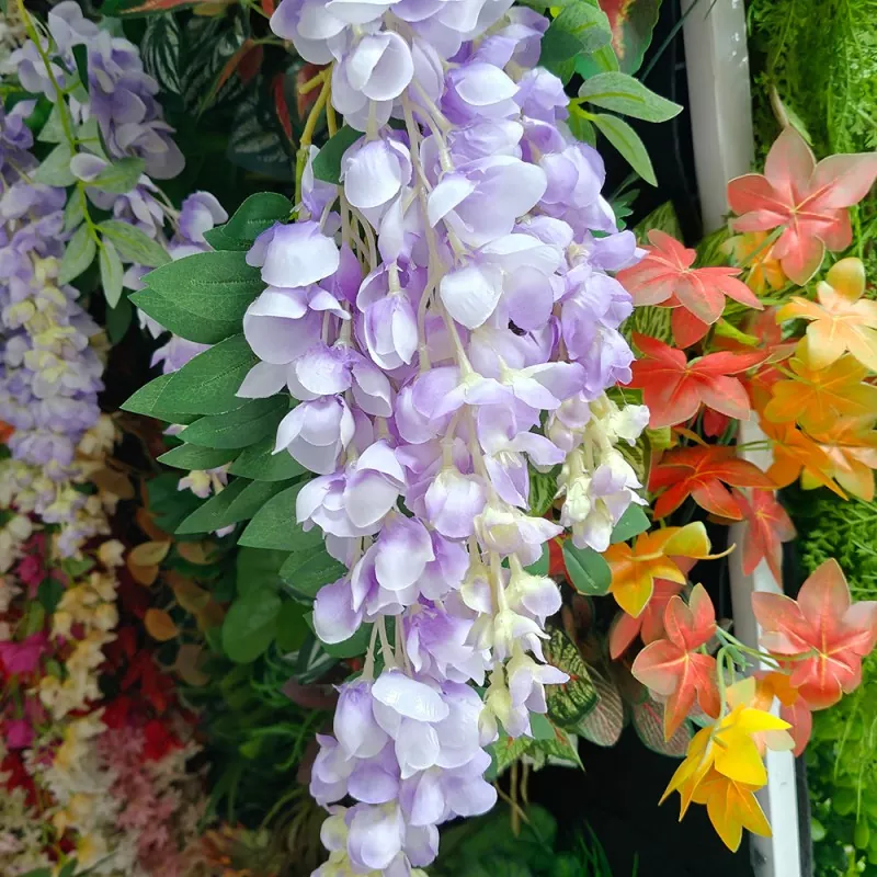 Šis netikras „Wisteria Vine“ turi tik 50 vienetų MOQ ir palaiko mišrių spalvų ir mišrių stiliaus užsakymus, o tai ypač tinka mažmenininkams, vestuvių kompanijoms ar didelio masto renginių pirkimui.